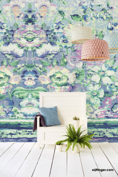 A beautiful wall mural with a floral pattern in blue, green and turquoise shades. Although the wallpaper is placed in the catalog with children's wallpapers, it is also suitable for complementing the interior of your living room or bedroom.