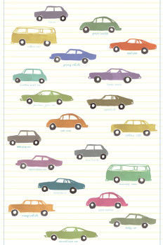 Wall mural for young toy car lovers - wallpaper full of colorful vehicles.