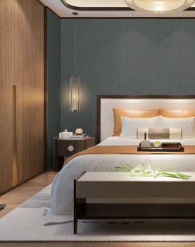 Metallic wallpapers bring a touch of luxury into interior. Modern, impressive non-woven wallpaper with an unusual design - background fine blue semi-gloss fabric, wallpaper texture created by blue and brown metallic "fibers".