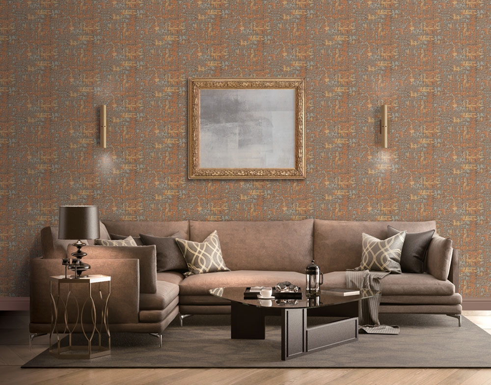 Metallic wallpapers bring a touch of luxury into interior. Modern, impressive non-woven wallpaper with an unusual design, resemblings brocade fabrics - soft semi-gloss fabric background, wallpaper texture is created by brown metallic "fibers".
