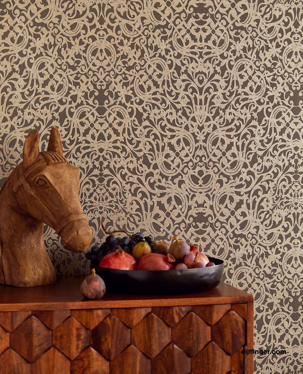 Hnědá vliesová tapeta se zlatobéžovými ornamenty 382504, Stature, Eijffinger