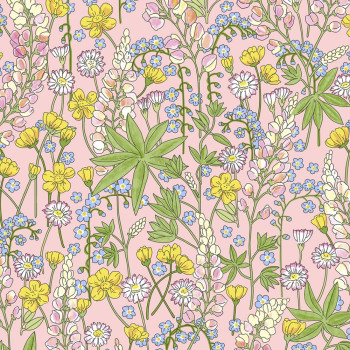 Růžová vliesová tapeta, vzor luční květiny 383501, Rice 2, Eijffinger