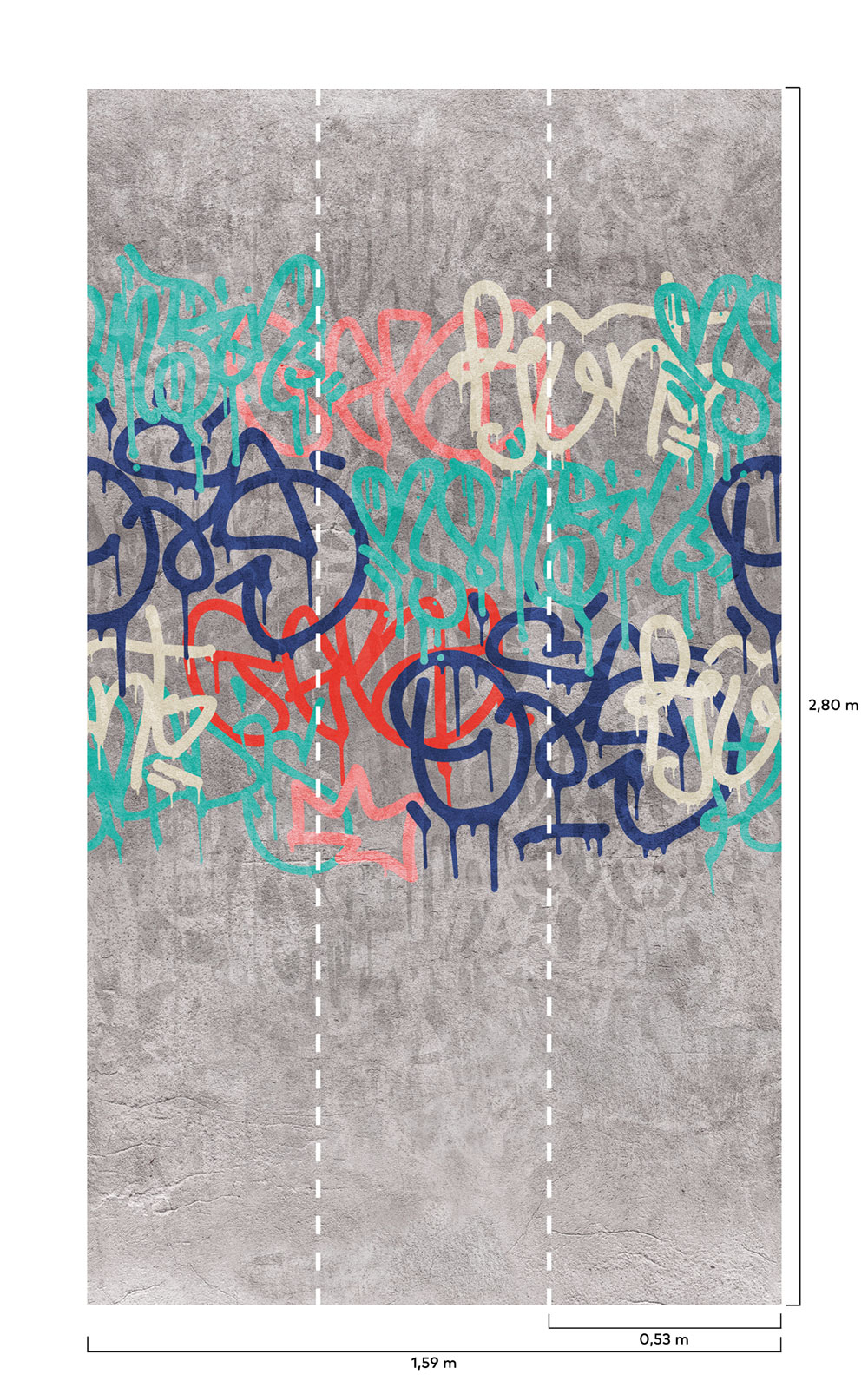 Graffiti. The wallpaper has a follow-up pattern, for a larger width just buy another piece.