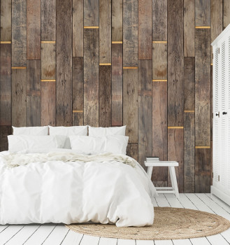 Wood 'n Gold - design of wooden planks with golden details. The wallpaper has a continuous pattern, for a larger width you just need to buy another piece.