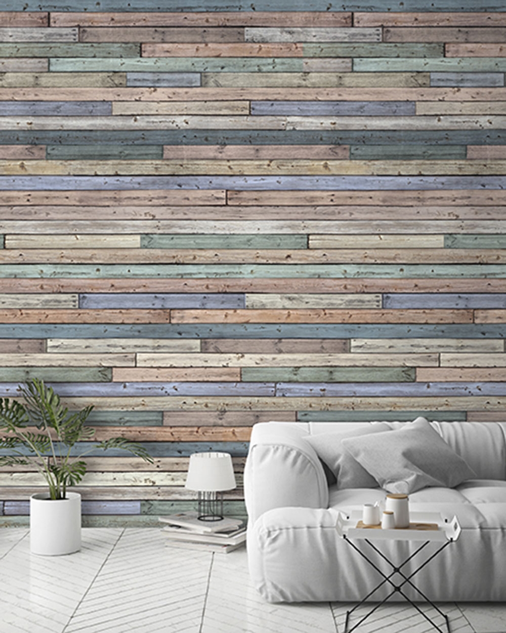 Coloured Wood - design of colored wooden planks. The wallpaper has a follow-up pattern, for a larger width just buy another piece.