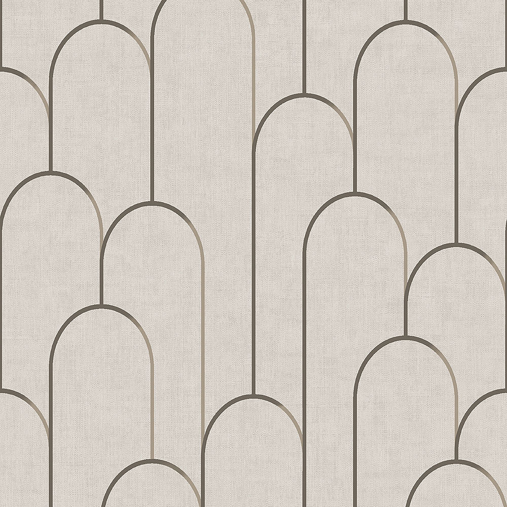 Gray wallpaper with a brown-gold pattern in Art Deco style.