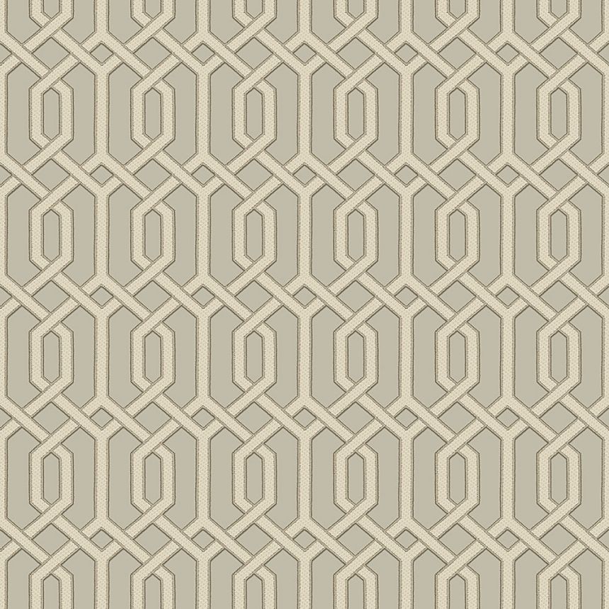 Non-woven, semi-gloss gray wallpaper with a fine texture, gray-beige-silver pattern with silver metallic outlines.