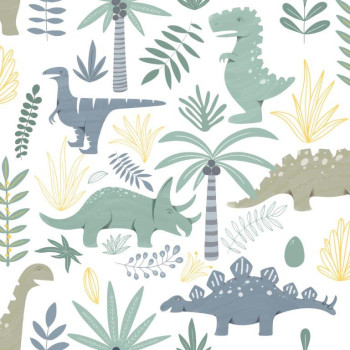 Dinosaurs - colorful non-woven wallpaper for a children's room.