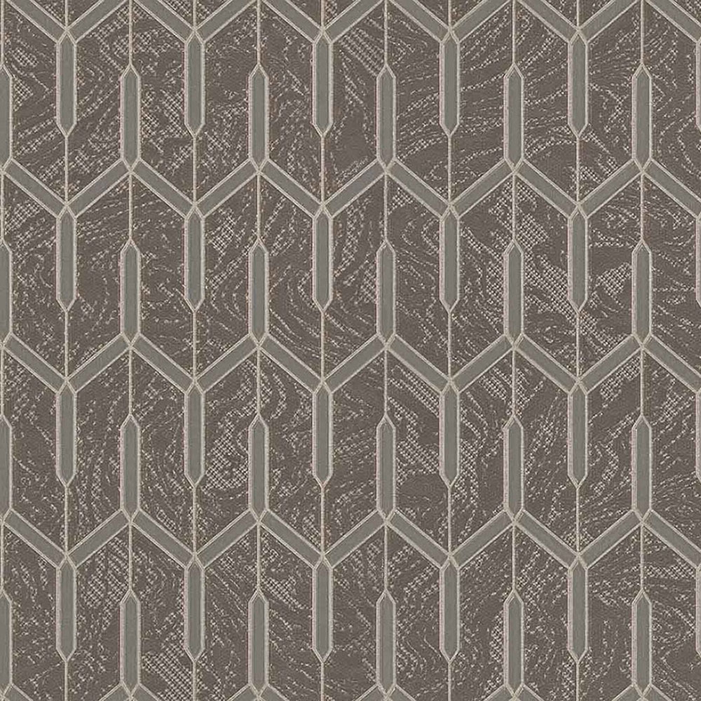 Roll width 0.7m. With this collection, you will bring uniqueness and elegance into your interior. Luxury non-woven wallpaper with a vinyl surface, design and texture of carbon fibers, hexagons pattern, effective matte and semi-gloss changing. Shades of metallic brown, gray-silver pattern, gold-beige contours. Easily combinable with related designs.