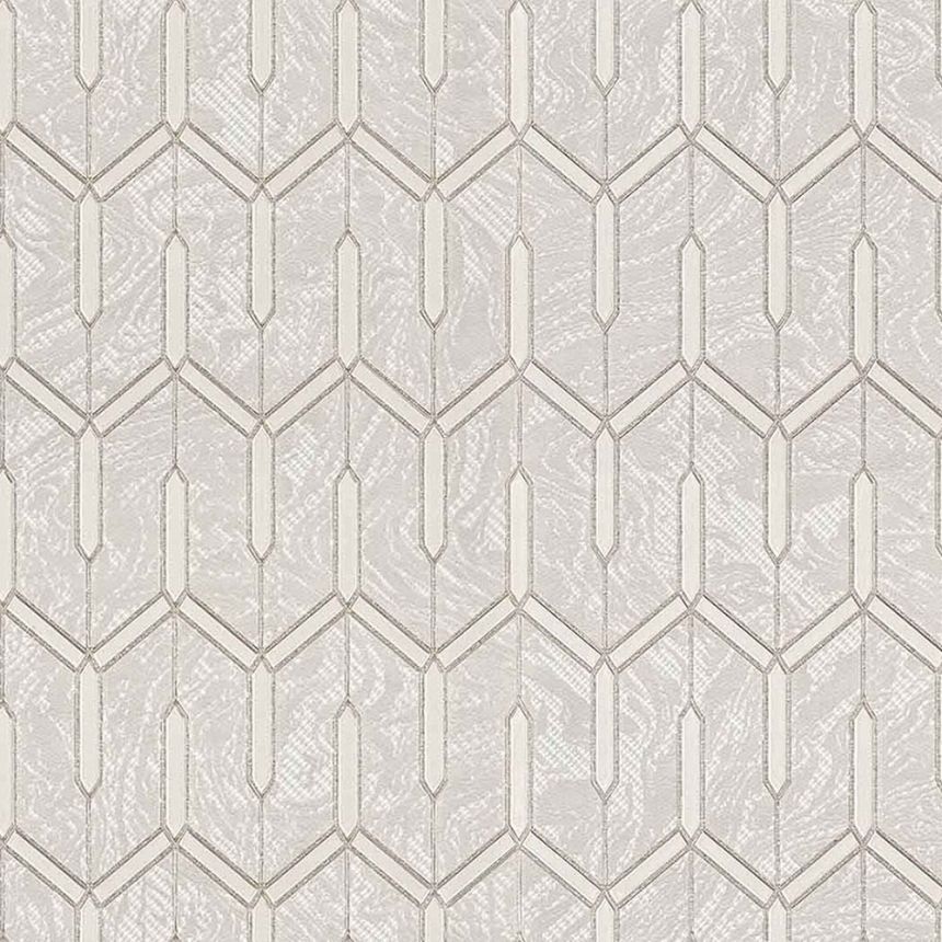 Luxury non-woven wallpaper with a vinyl surface, design and texture inspired by a carbon fiber, effective textures changing. Shades of metallic light gray, pearl white pattern, metallic beige contours.