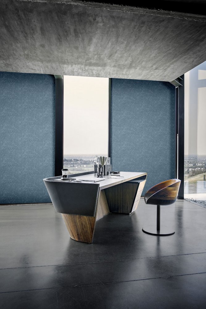 Roll width 0.7m. With this collection, you will bring uniqueness and elegance into your interior. Luxury non-woven wallpaper with a vinyl surface, design and texture inspired by a carbon fiber. Shades of metallic blue, effective textures changing. Easily combinable with related designs.