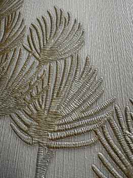 Luxurious cream non-woven wallpaper with vinyl surface, semi-glossy grey-cream-beige tree branches.
