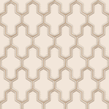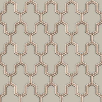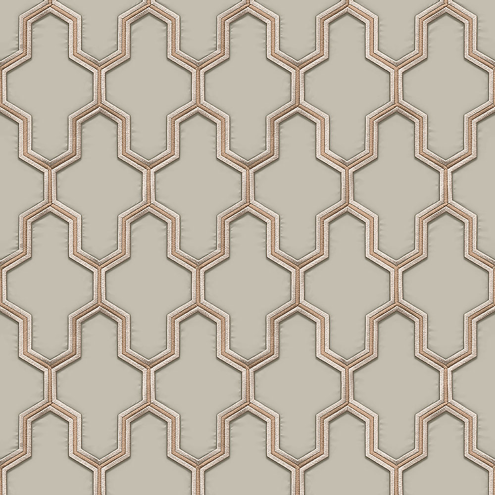 Art Deco brown-beige embroidered pattern on a non-woven wallpaper with a gray background.