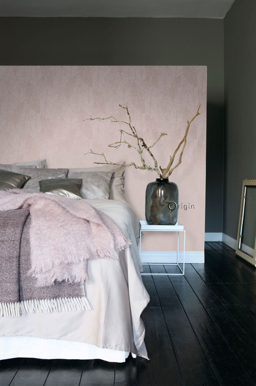 Old pink wallpaper, metallic leaf outlines 347712, City Chic, Origin