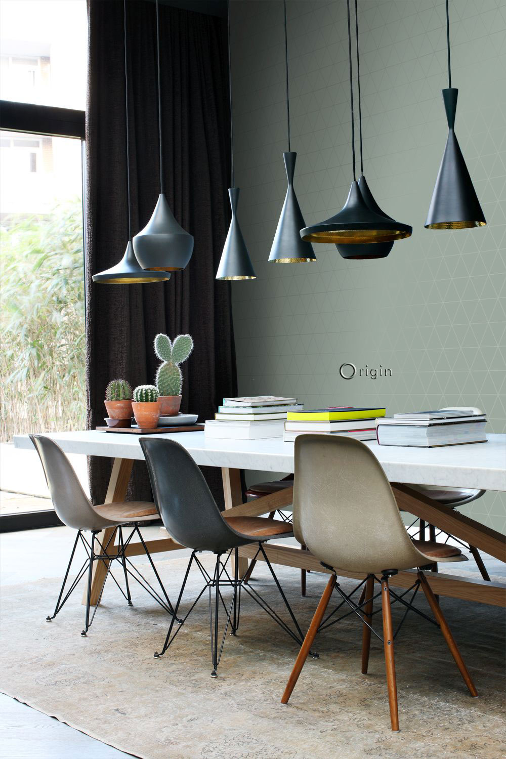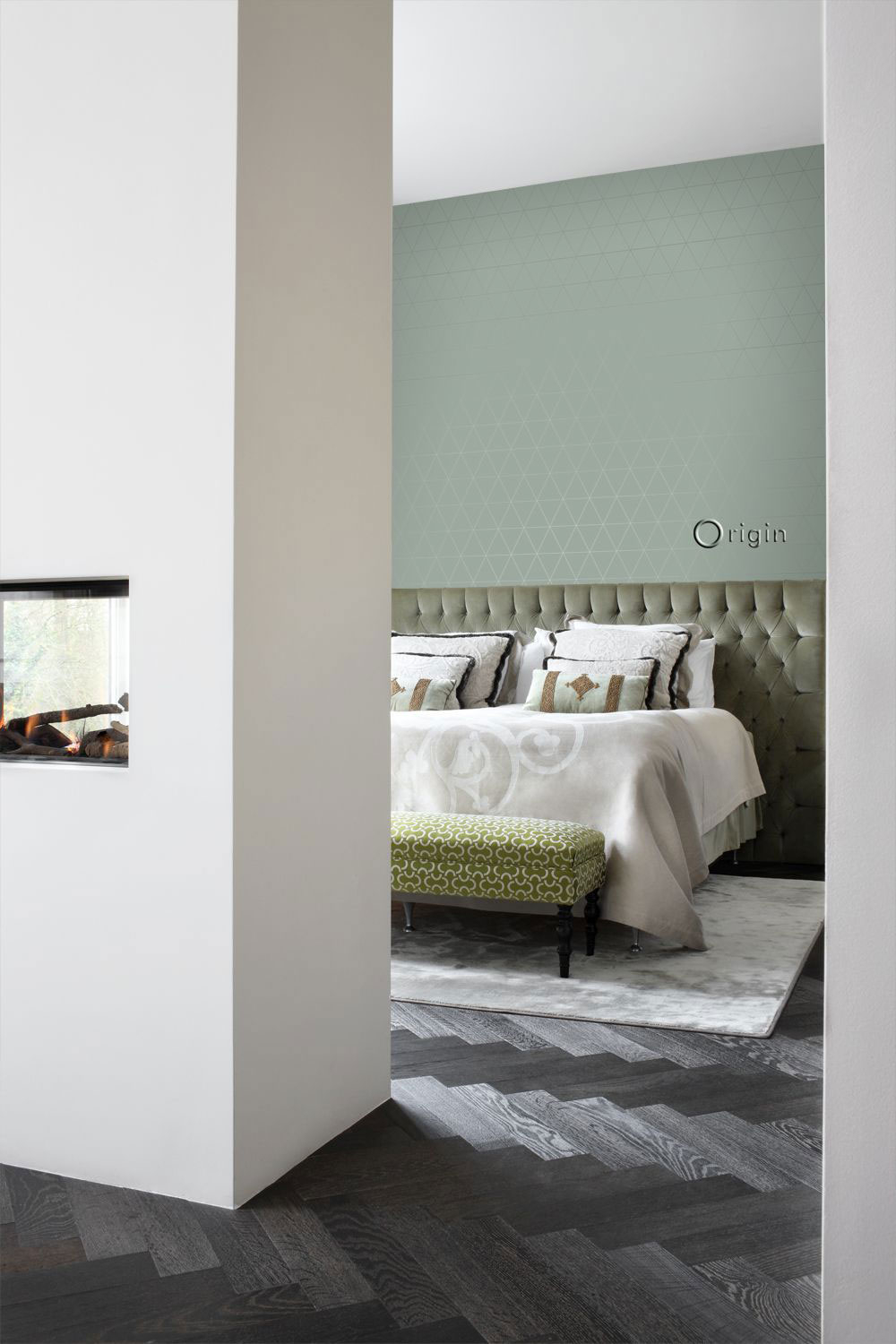 Green wallpaper, metallic outlines of triangles 347714, City Chic, Origin