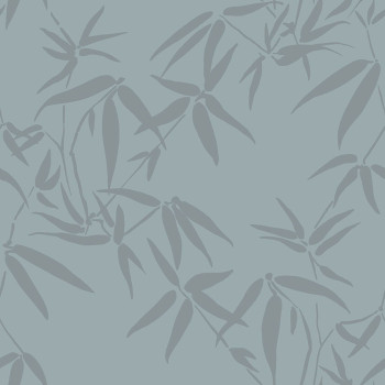 Gray-green non-woven wallpaper, metallic bamboo leaves.