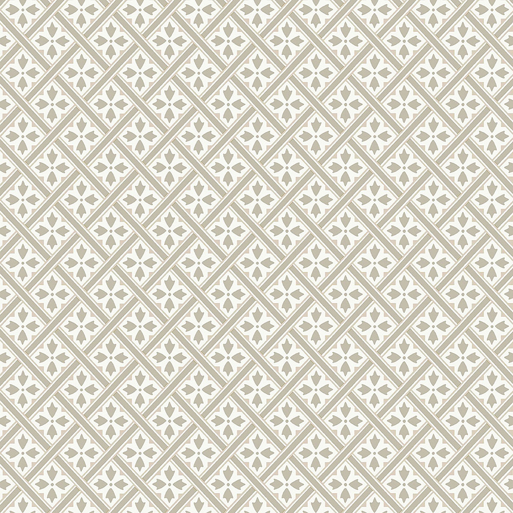 Non-woven wallpaper with beige geometric patterns on a smooth background will bring a pleasant atmosphere into your interior.