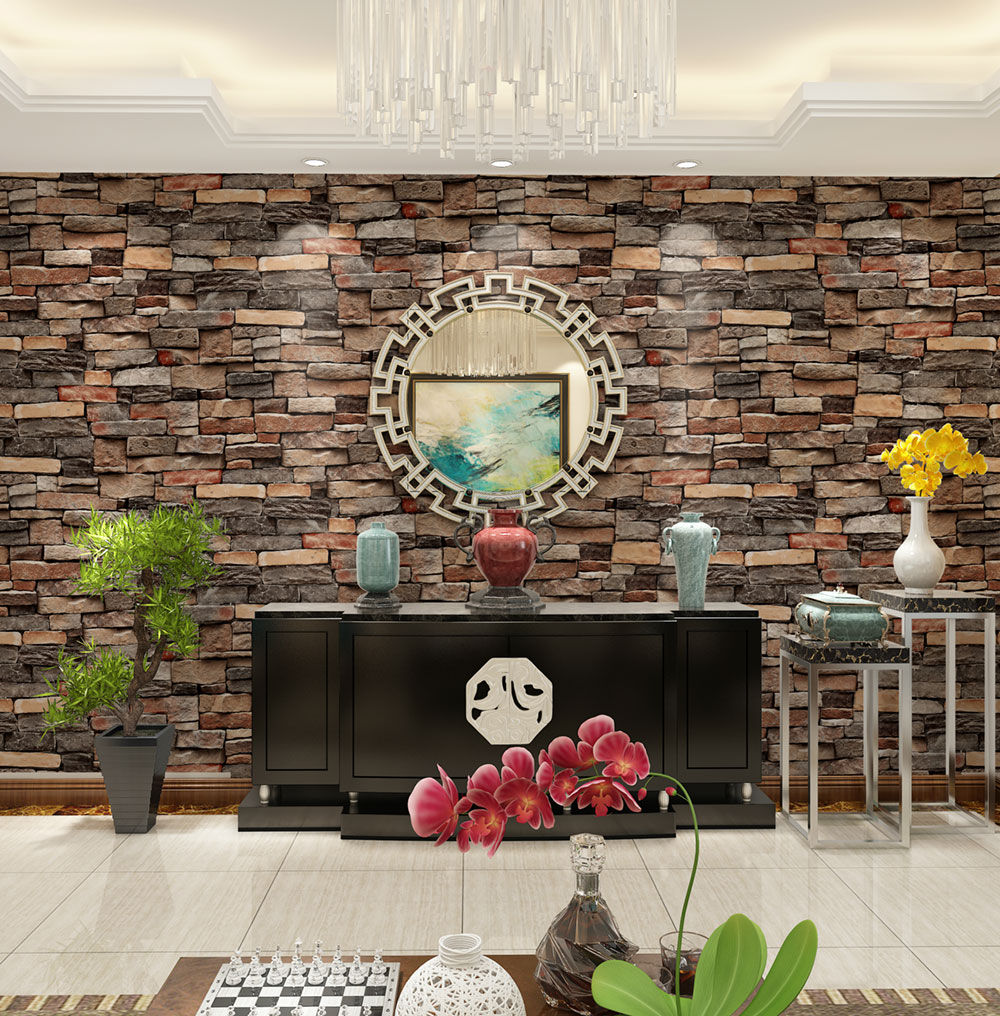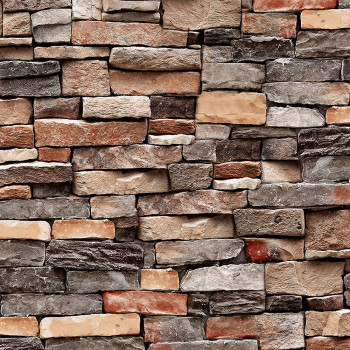 Washable vinyl wallpaper with stone decor, stone wall imitation.