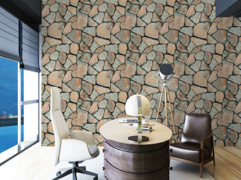 Washable vinyl wallpaper with stone decor, stone wall imitation.