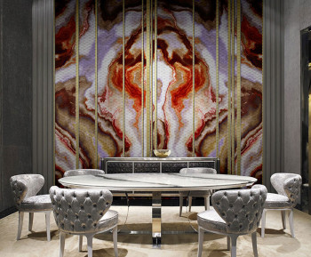Luxury non-woven wall mural with an agate motif and metallic stripes.