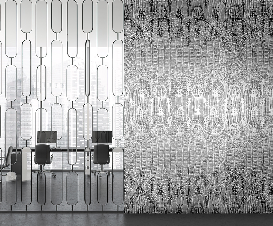 Combining the precise craftsmanship of Zambaiti Parati and renowned German fashion designer Philipp Plein, a collection of iconic and luxurious wallpapers has been created, inspired by the fabrics and materials Philipp Plein uses in his fashion clothing and accessories collections. The wallpaper collection is unique mainly by transferring animal and textural effects to the wallpapers. The tropical line that gently flows through the entire collection was designed with floral elements, as well as the line with the textile geometry of the logo. These are characteristic elements that have become ingrained in the brand's DNA with constant attention to detail.