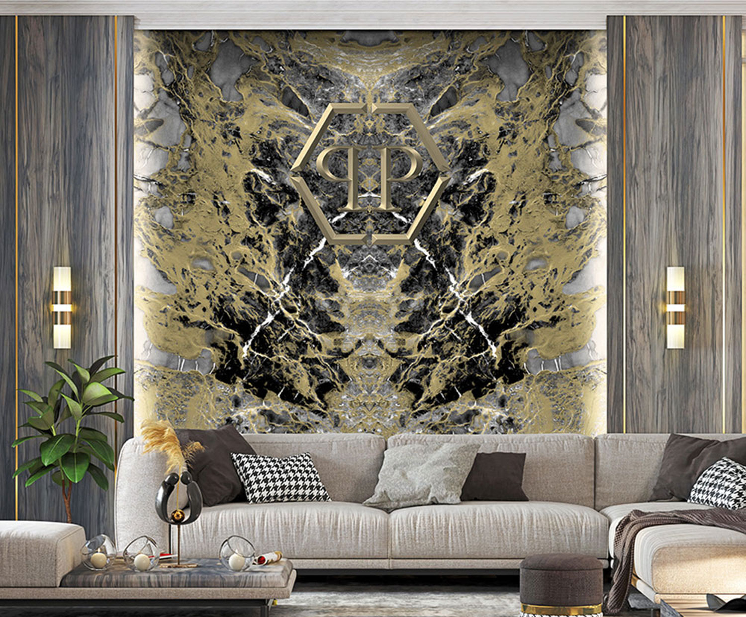 Combining the precise craftsmanship of Zambaiti Parati and renowned German fashion designer Philipp Plein, a collection of iconic and luxurious wallpapers has been created, inspired by the fabrics and materials Philipp Plein uses in his fashion clothing and accessories collections. The wallpaper collection is unique mainly by transferring animal and textural effects to the wallpapers. The tropical line that gently flows through the entire collection was designed with floral elements, as well as the line with the textile geometry of the logo. These are characteristic elements that have become ingrained in the brand's DNA with constant attention to detail.