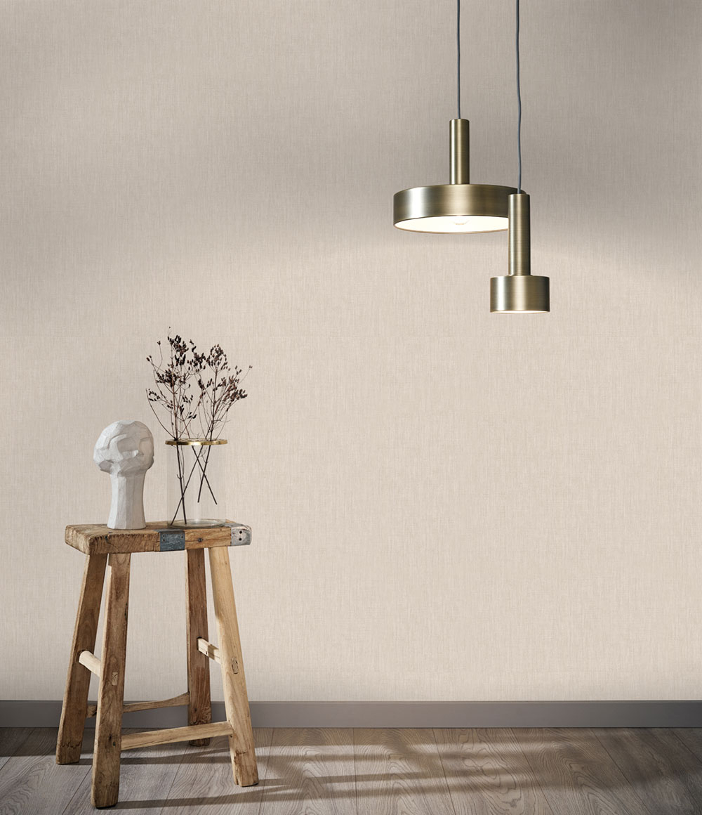 Luxury beige non-woven wallpaper with a vinyl surface - fabric texture.