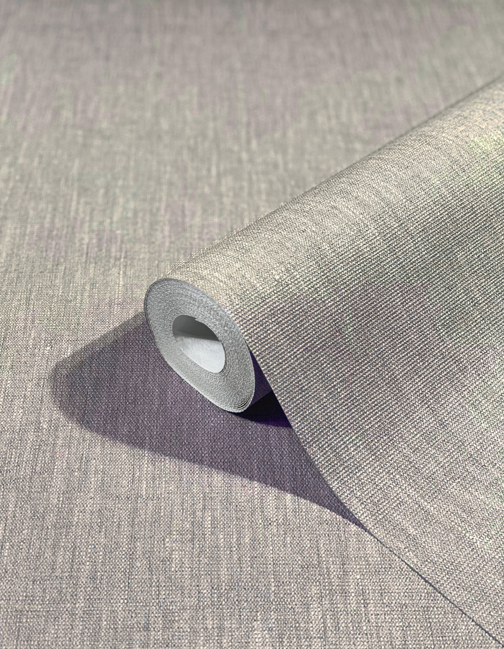 Luxury grey-beige non-woven wallpaper with a vinyl surface - fabric texture.