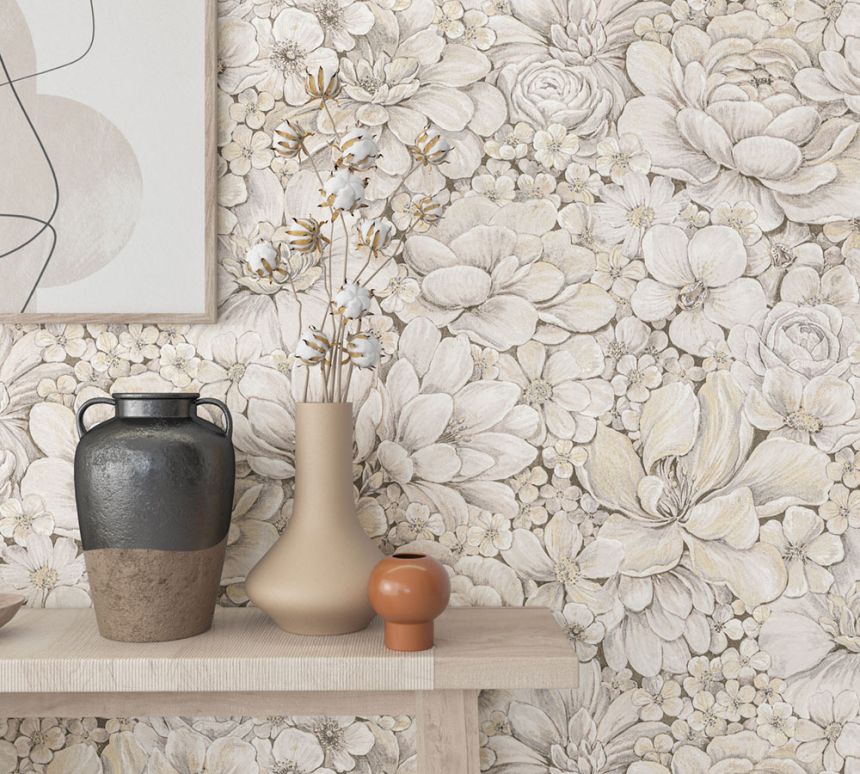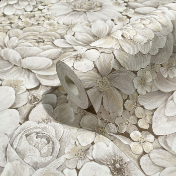 Luxury grey-beige wallpaper with flowers 33951, Botanica, Marburg