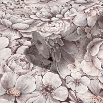 Luxury grey-pink wallpaper with flowers 33954, Botanica, Marburg