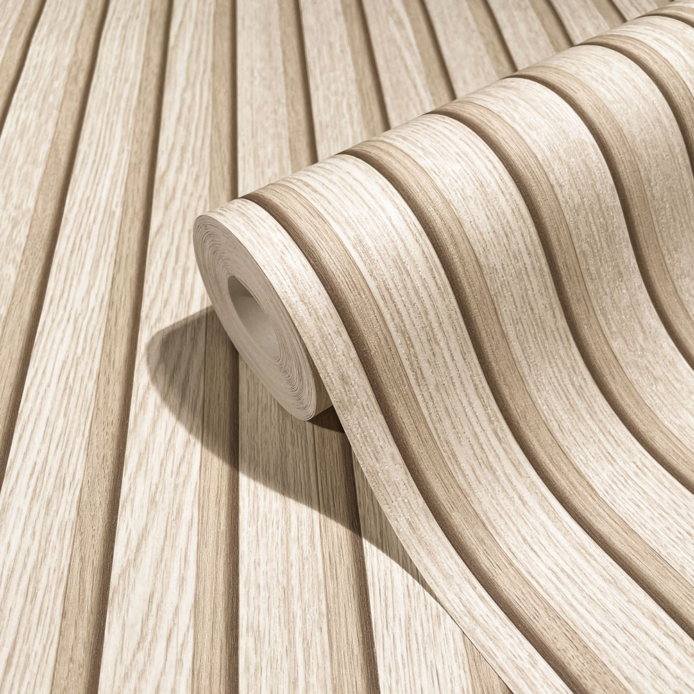 3D non-woven wallpaper wood imitation, shades of cream and beige.. Non-woven wallpaper with a vinyl surface.