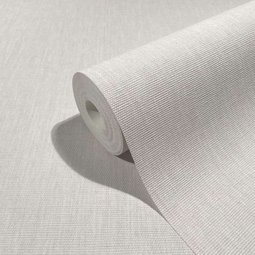 Luxury, textured, grey-cream non-woven wallpaper with a vinyl surface - fabric imitation.