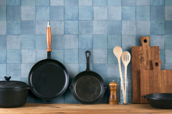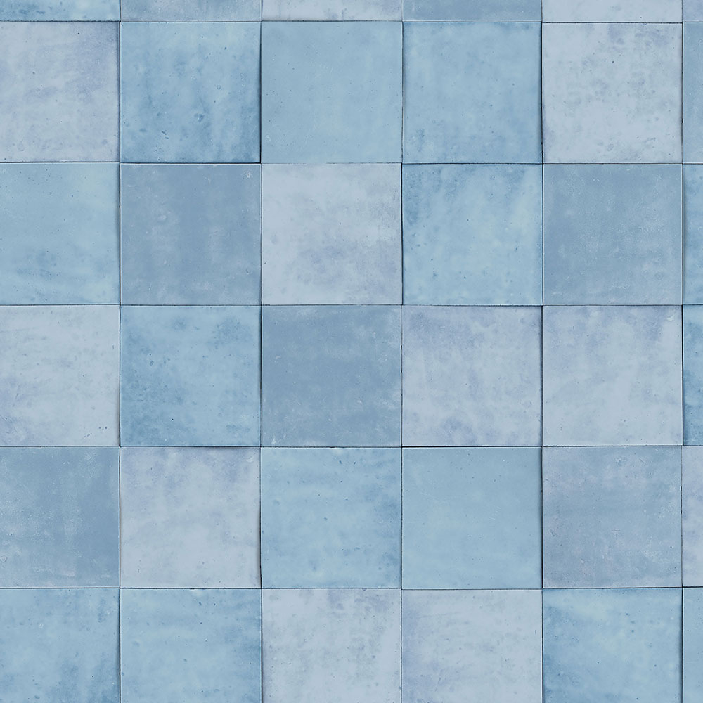 Luxury coarse textured non-woven wallpaper with a vinyl surface with blue tile decor. Tile size approx. 10.5x10.5cm.