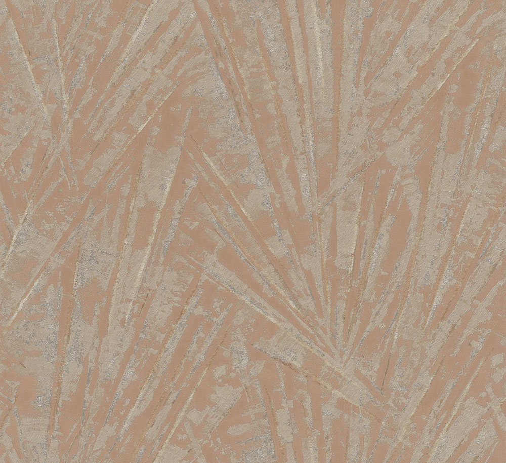 Orange non-woven wallpaper with a vinyl surface inspired by a palm leaf, which is particularly interesting due to the contrast of fine gold lines on a matt background.