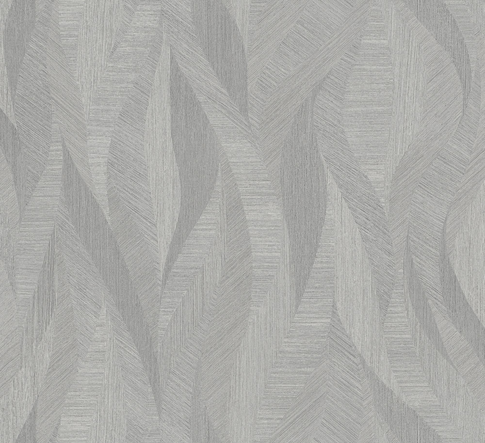 Luxury grey non-woven wallpaper with a vinyl surface and a wave pattern that resembles lines drawn by the wind in the desert sand or the gentle ridges of the dunes.