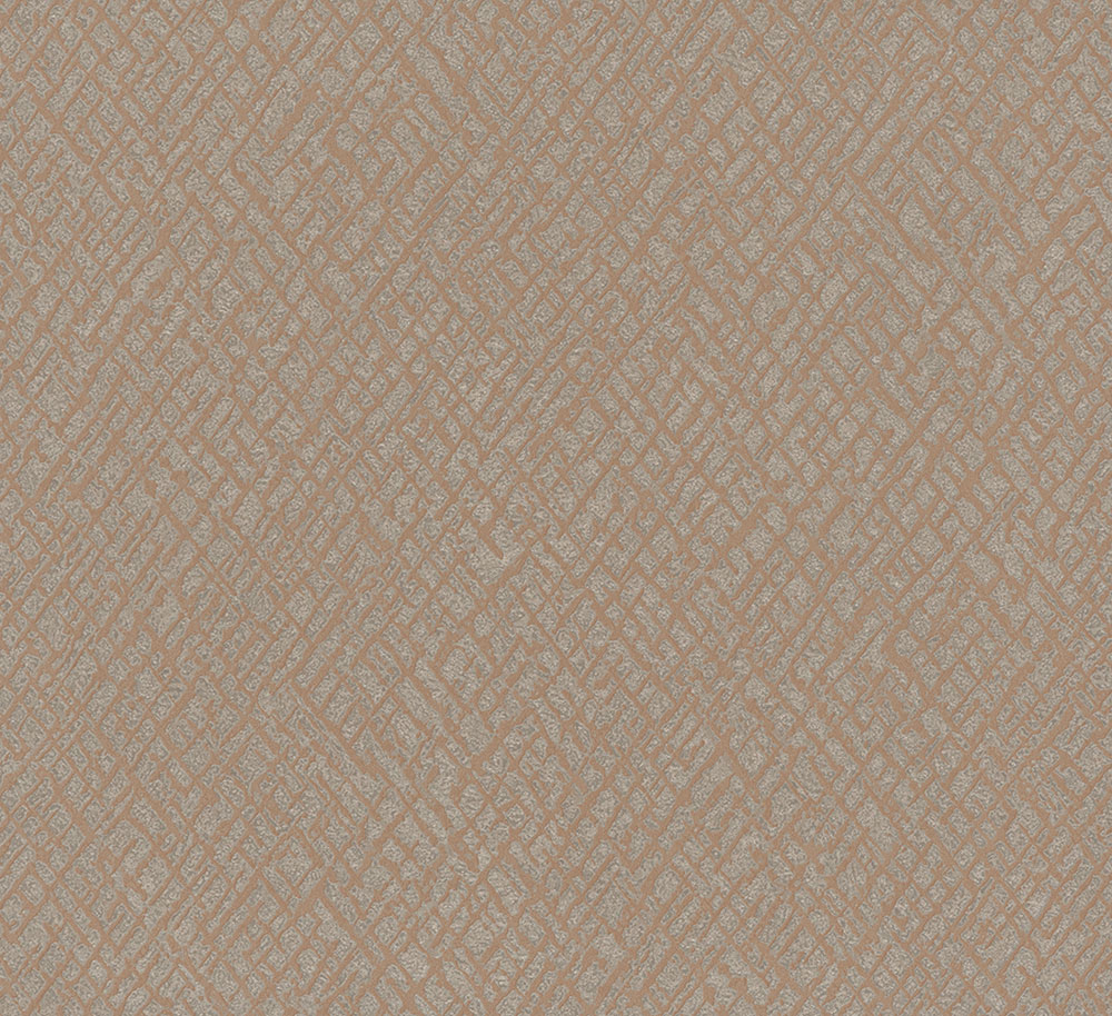 Luxury ocher non-woven wallpaper with a vinyl surface whose pattern in golden metallic shades is inspired by cracks in the sun-dried earth.