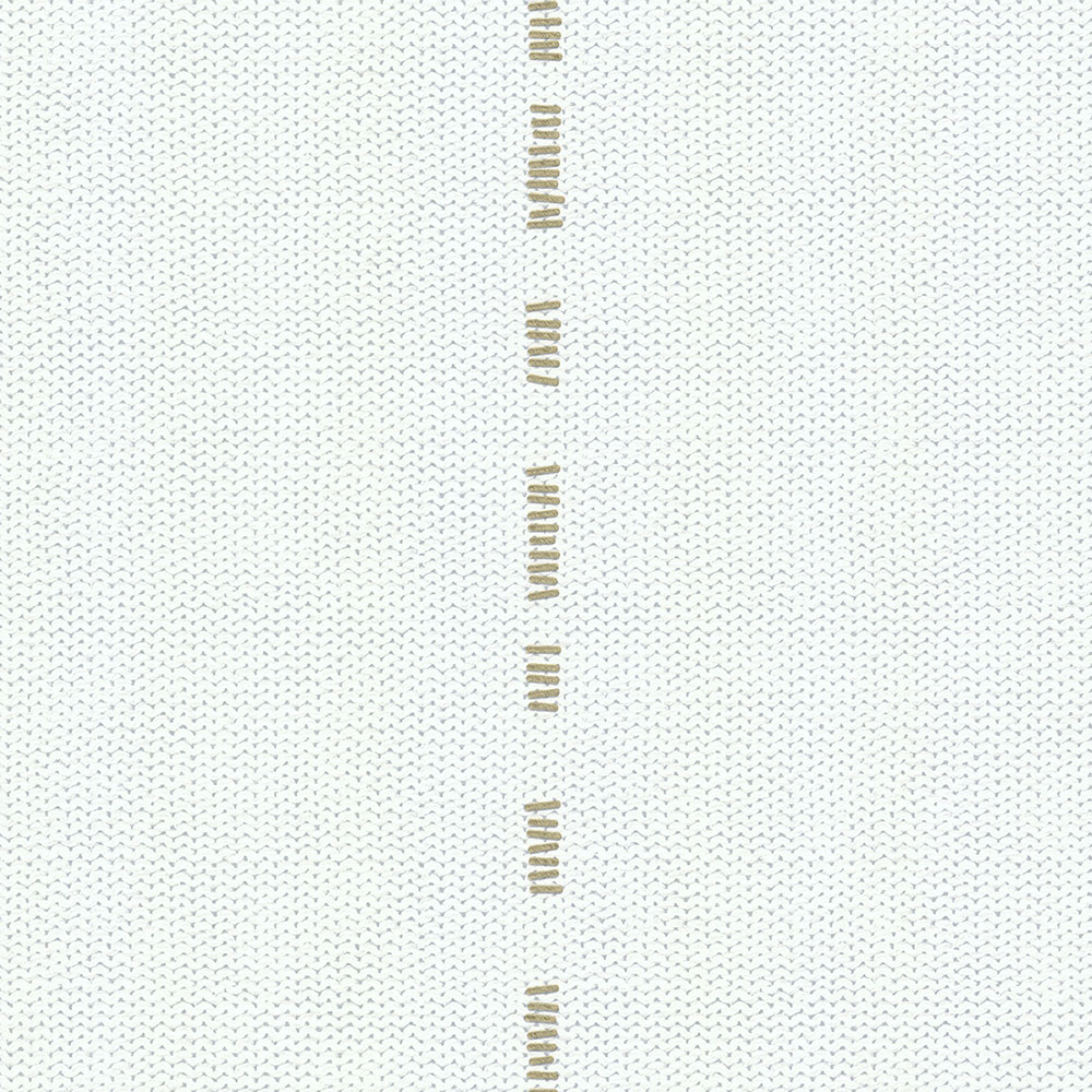 Non-woven wallpaper with a vinyl surface, white-grey wavy texture, golden dashed stripe.