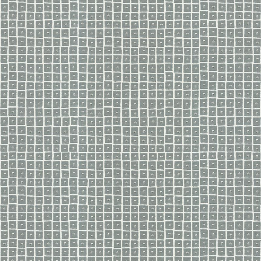 Gray non-woven wallpaper with a vinyl surface, gray squares with silver dots.