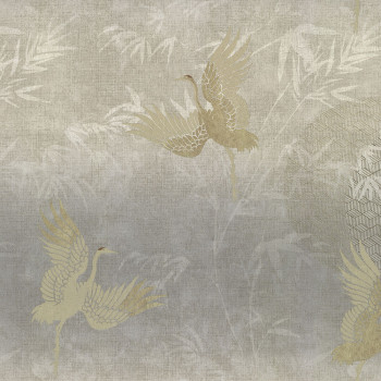 Luxury gray-beige wallpaper, birds 72907, Zen, Emiliana Parati