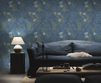Luxury blue wallpaper, twigs, blooms 72959, Zen, Emiliana Parati