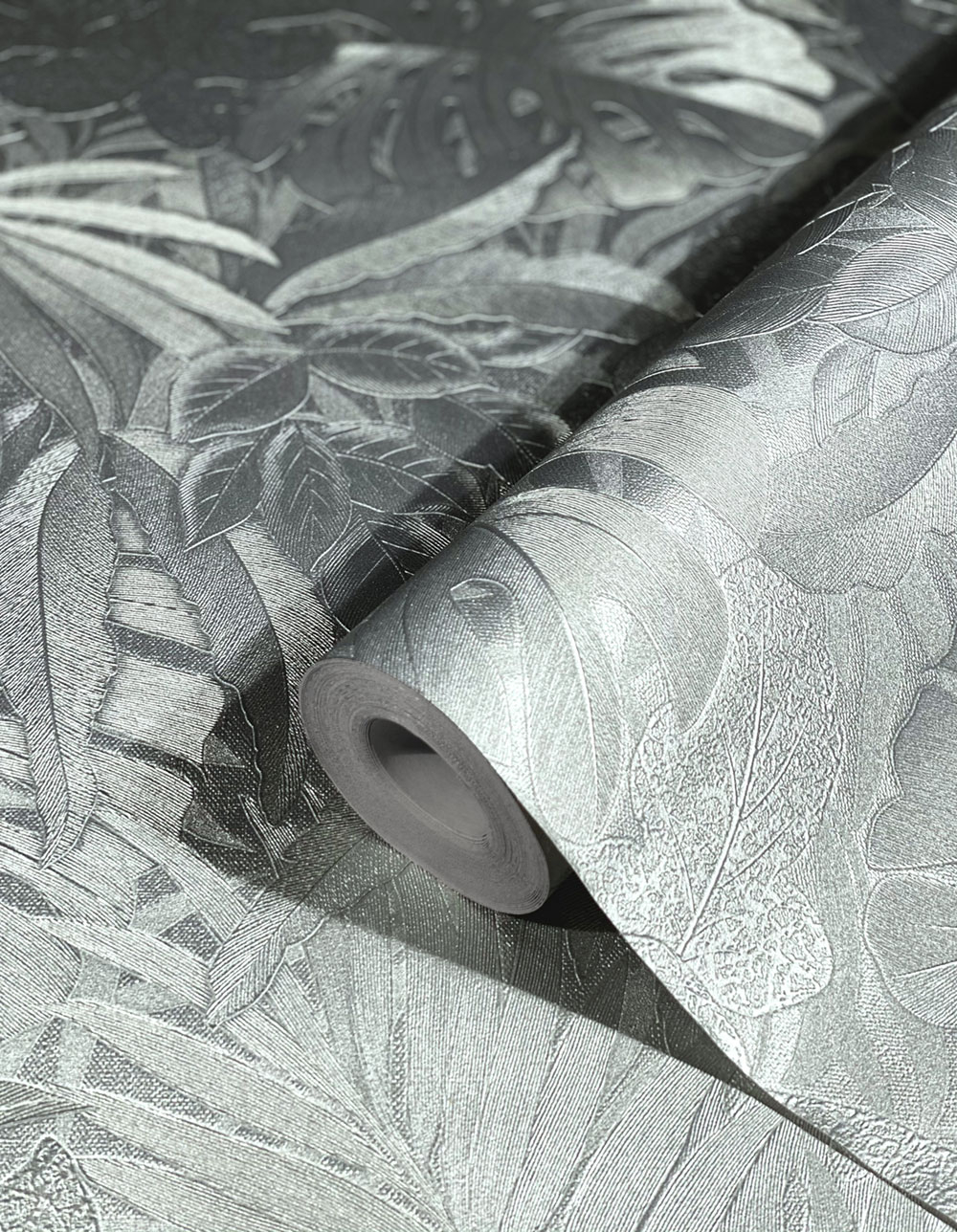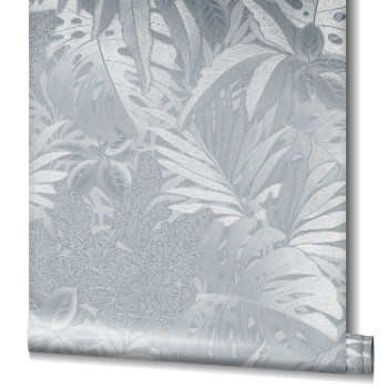 Luxury silver wallpaper with leaves 33301, Botanica, Marburg
