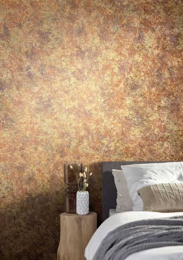Bronze non-woven wallpaper, metallic effects, imitation of vintage plaster.
