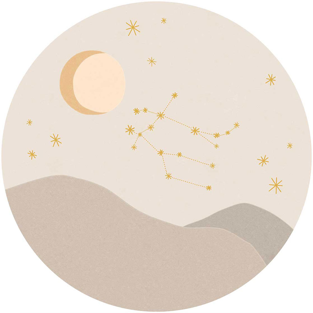 Beige circular wallpaper, Gemini Constellation 323125, Explore, Eijffinger, diameter 115 cm