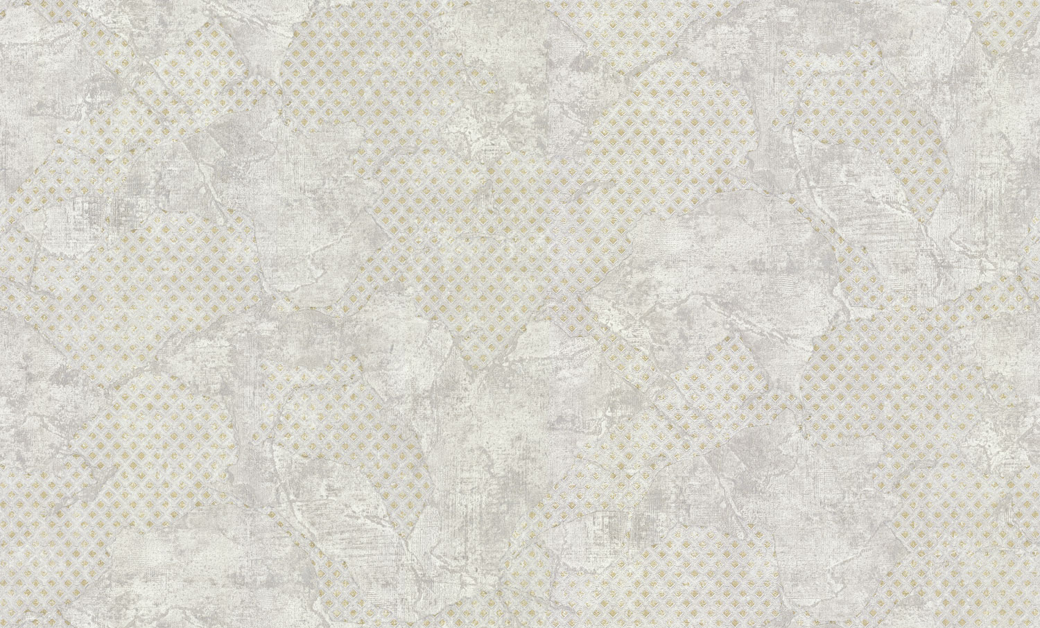 Luxury gold-cream non-woven wallpaper - imitation of stucco plaster with a gentle geometric background.