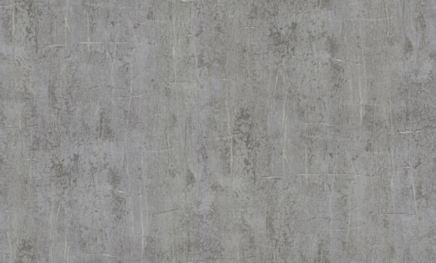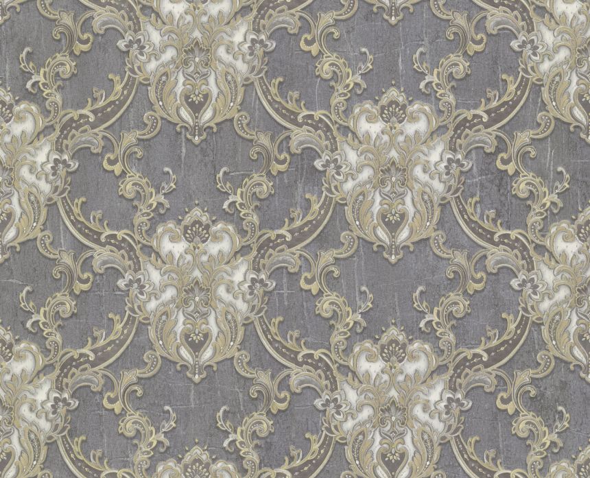 Luxury wallpaper with silver-gold baroque ornaments on a background imitating gray plaster.