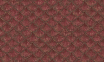 Luxury burgundy-gold wallpaper with a geometric pattern in the shape of fish scales.