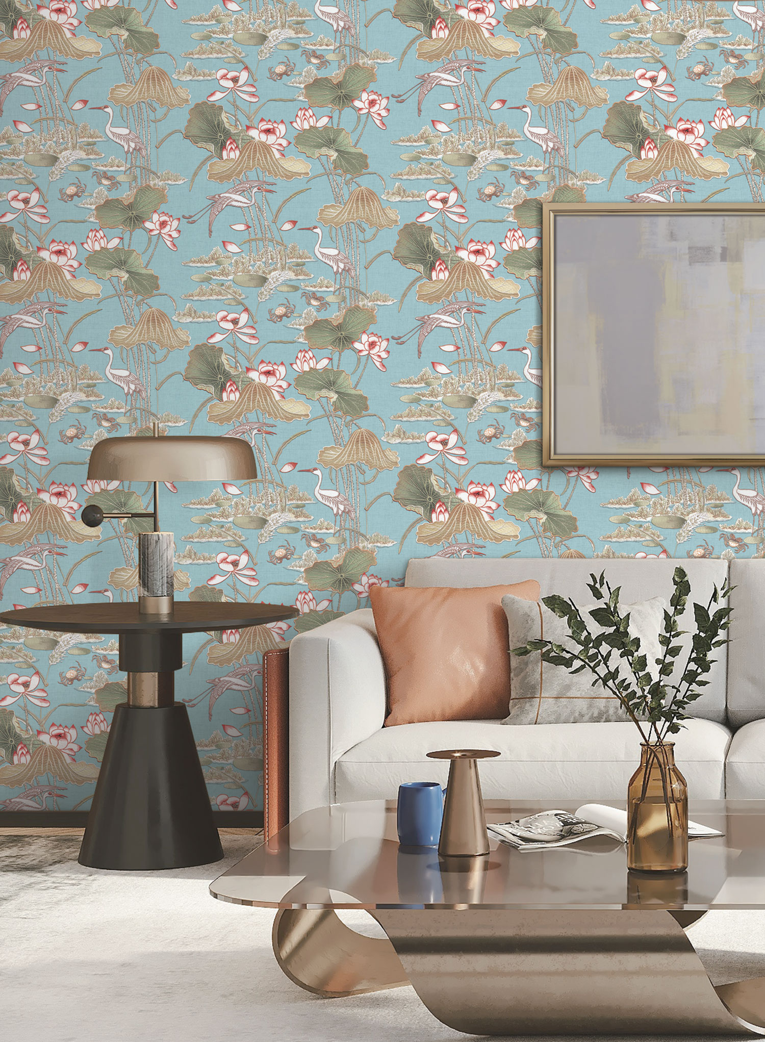 Wallpaper with a water surface pattern with water lilies will bring harmony to your home.