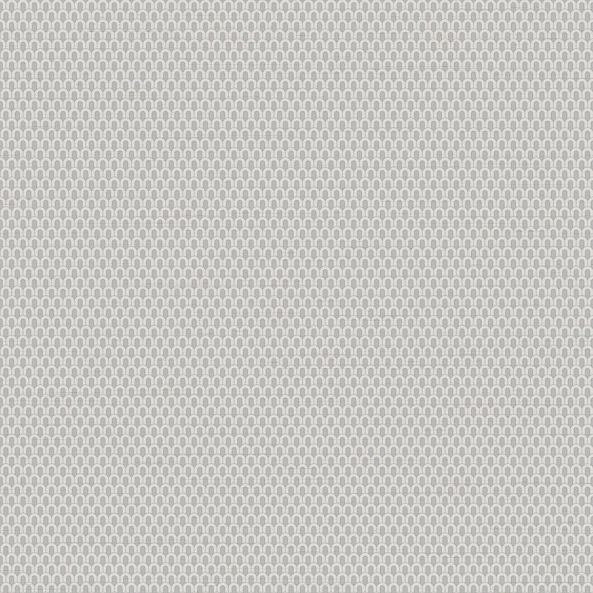 Luxury non-woven wallpaper, finely embossed texture of silk fabric with an arched pattern, shades of gray, golden outlines. Interior photo is for illustration only.