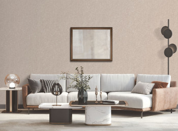 Luxury beige non-woven wallpaper, finely embossed texture evoking natural material.