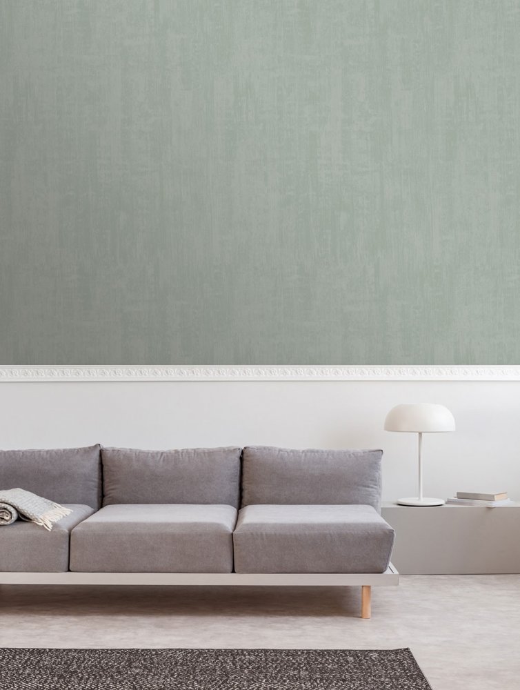 Elegant, gently brindle pale green non-woven wallpaper.